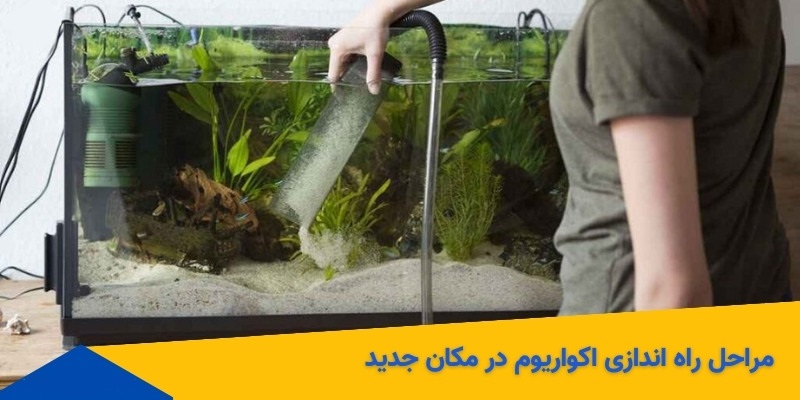 راه اندازی آکواریوم در مکان جدید، یک فرایند بسیار حساس و مهم است. پس از جابجایی، شما باید شرایط محیطی مناسب را برای ماهیان در محل جدید تامین نمایید. بعد از انتقال آکواریوم به مقصد، تمام تجهیزات را به دقت نصب کنید. سپس آب را با دقت به آکواریوم بازگردانده و اجازه دهید تا پارامترهای آب به تدریج به حالت عادی برگردد. پس از جابجایی آکواریوم و قرار دادن آن در محل جدید، باید 24 ساعت صبر کنید تا تغییرات احتمالی در شرایط آب کاملا تطبیق یابند. همچنین در این 24 ساعت، تغذیه ماهیان را کاهش دهید یا به صورت کامل قطع کنید.